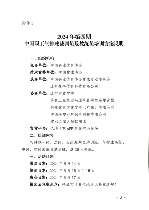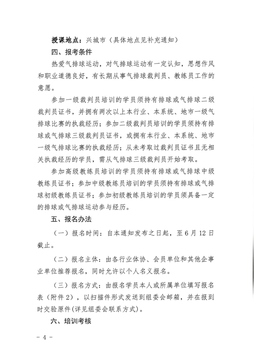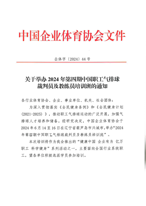 關(guān)于舉辦2024年第四期中國職工氣排球裁判員及教練員培訓班的通知