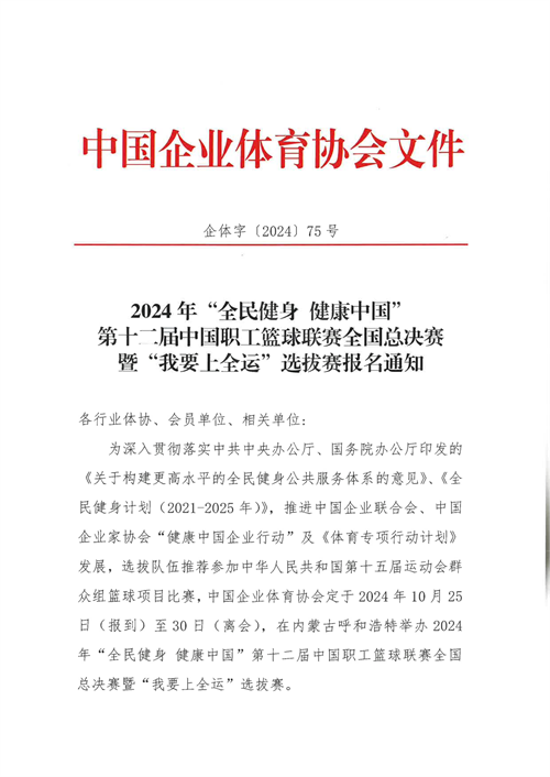 2024年“全民健身 健康中國”第十二屆中國職工籃球聯賽全國總決賽暨“我要上全運”選拔賽報名通知