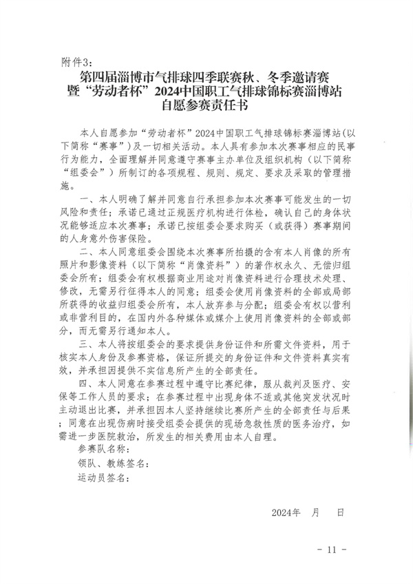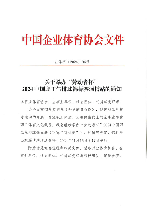 關于舉辦“勞動者杯”2024中國職工氣排球錦標賽淄博站的通知
