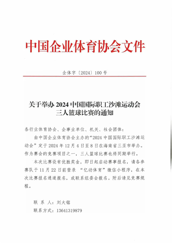 關于舉辦2024中國國際職工沙灘運動會三人籃球比賽的通知