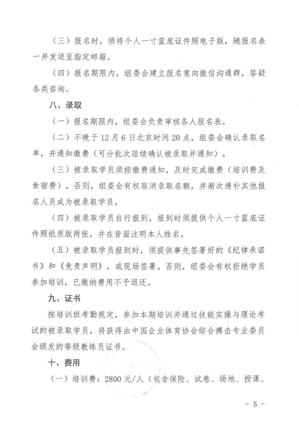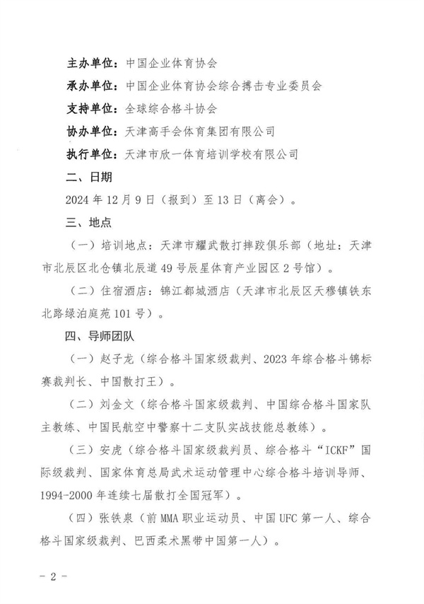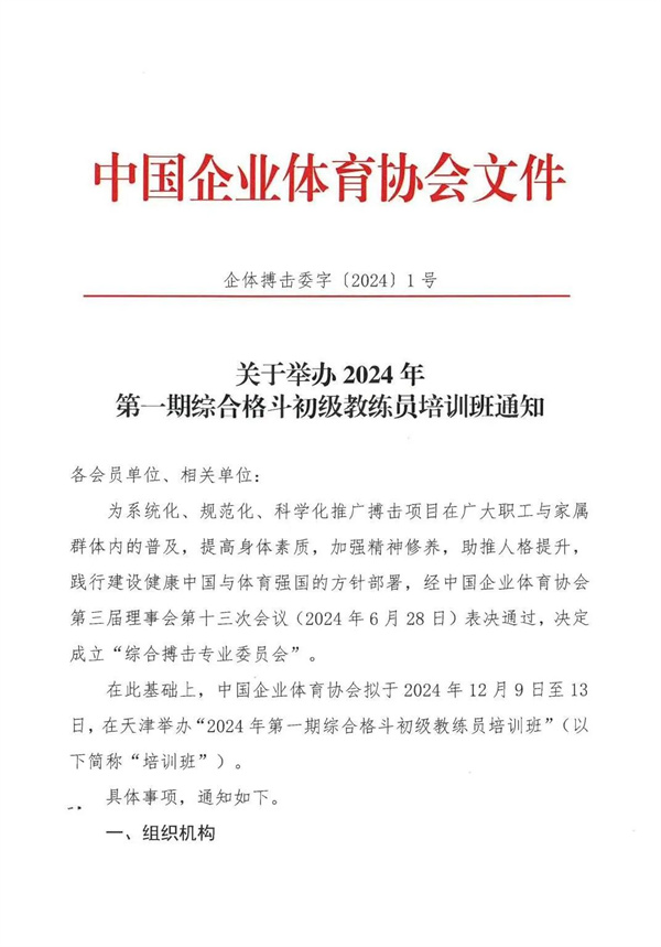 關于舉辦2024年第一期綜合格斗初級教練員培訓班通知
