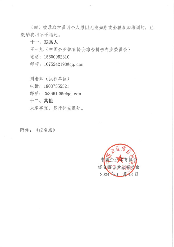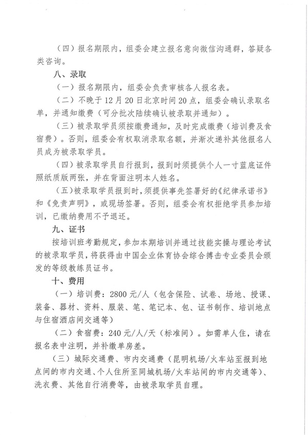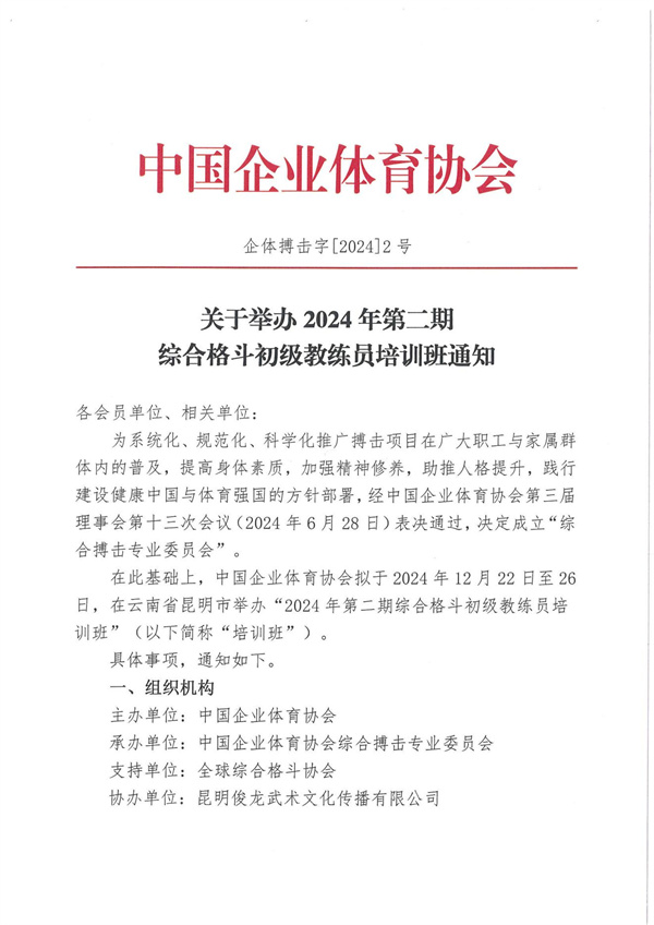 關于舉辦2024年第二期綜合格斗初級教練員培訓班通知