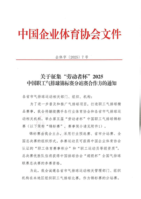 關于征集“勞動者杯”2025中國職工氣排球錦標賽分站賽合作方的通知