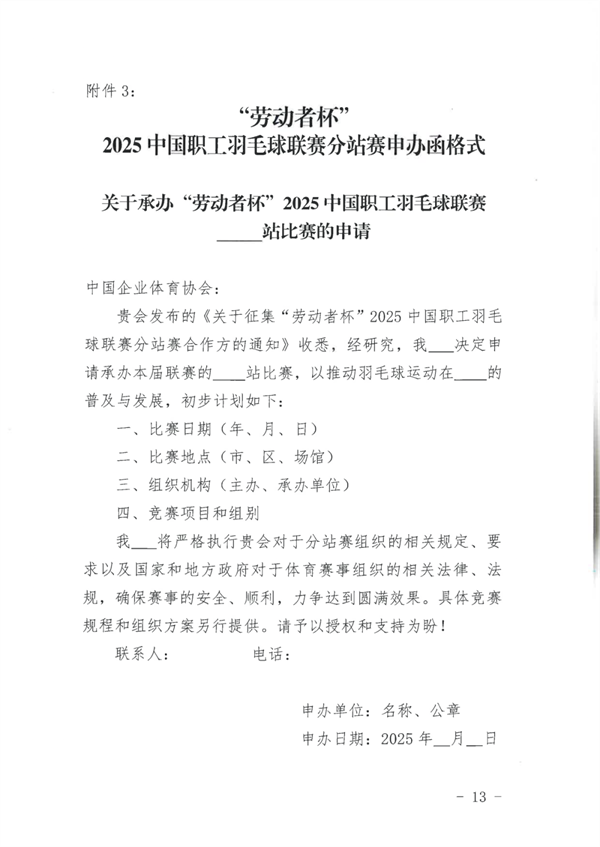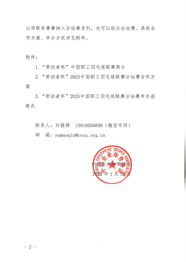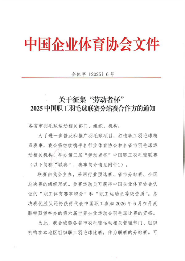 關于征集“勞動者杯”2025中國職工羽毛球聯賽分站賽合作方的通知