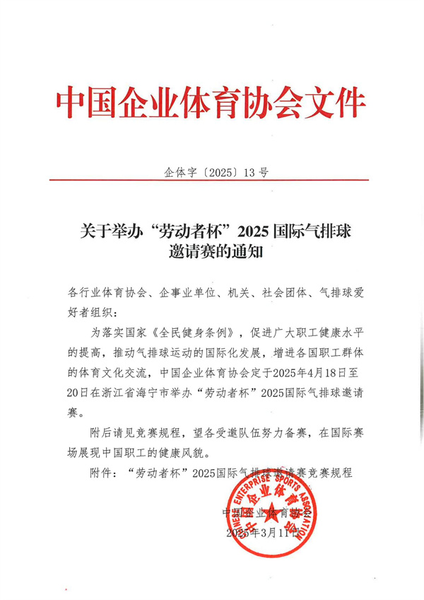 關于舉辦“勞動者杯”2025國際氣排球 邀請賽的通知