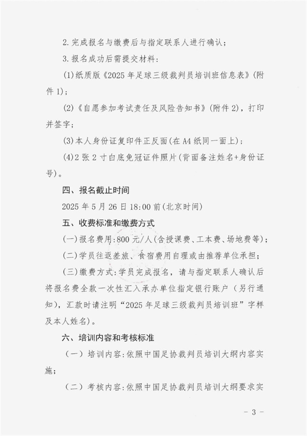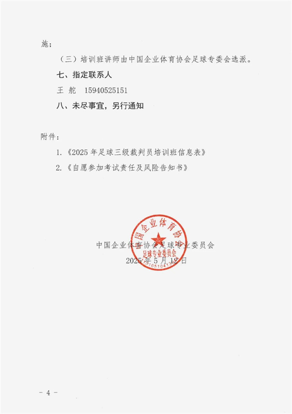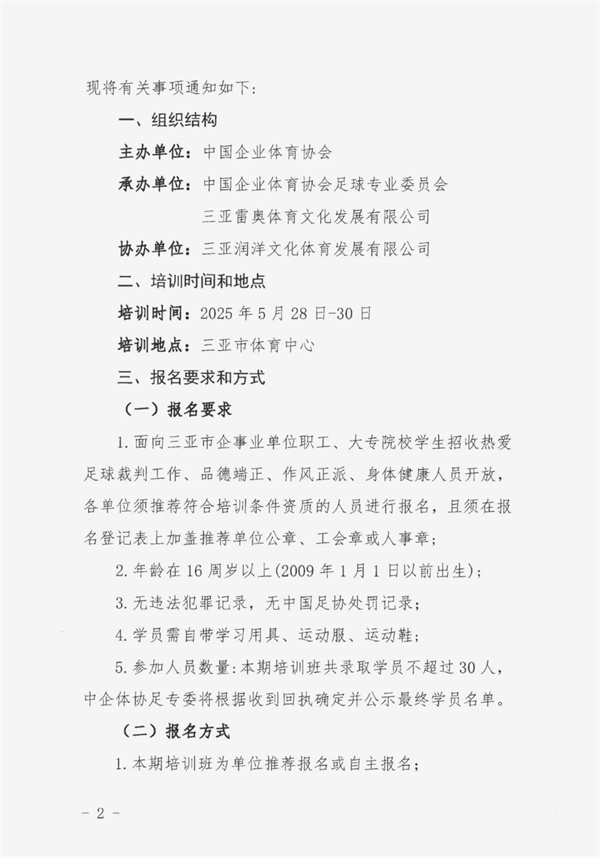 1、企體足委字〔2025〕3號關于舉辦2025年中國企業體育協會第五期中國足球協會十一人制三級裁判員培訓班的通知