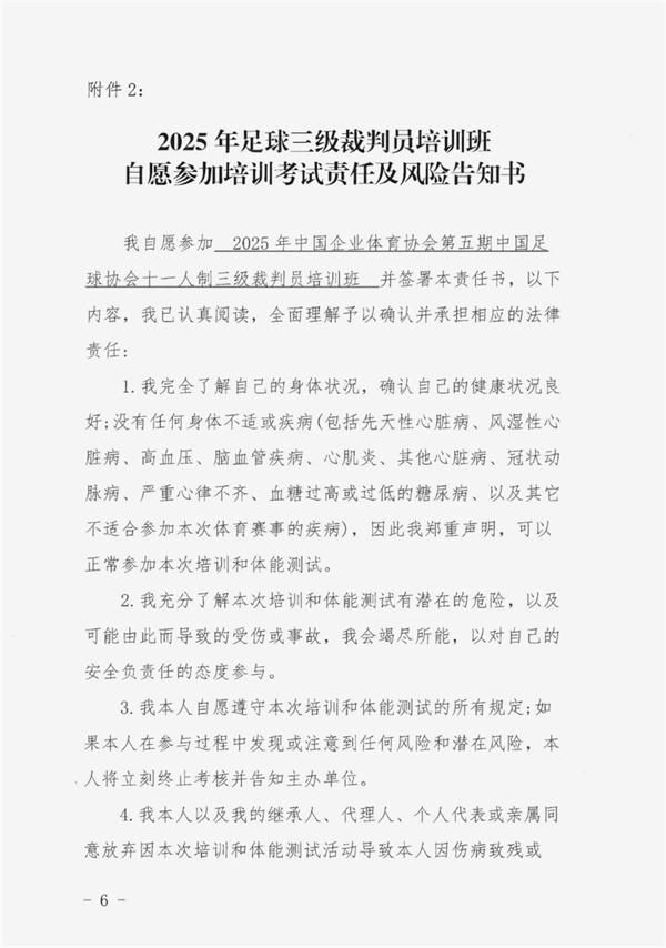3、2025年足球三級裁判員培訓班自愿參加培訓考試責任及風險告知書