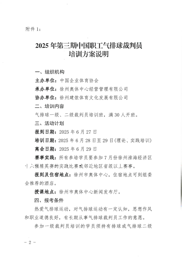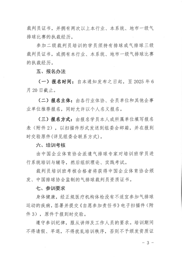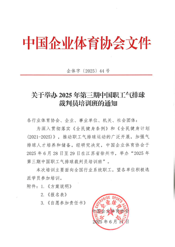 關于舉辦 2025 年第三期中國職工氣排球裁判員培訓班的通知