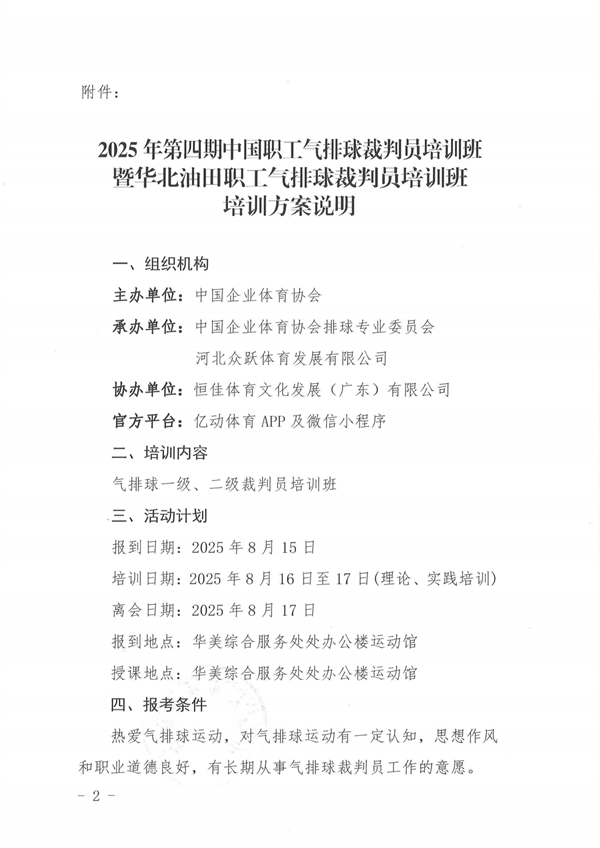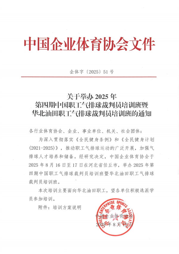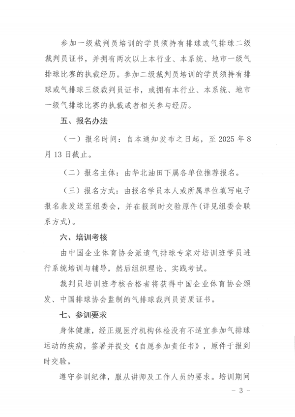 關于舉辦2025年第四期中國職工氣排球裁判員培訓班暨華北油田職工氣排球裁判員培訓班的通知