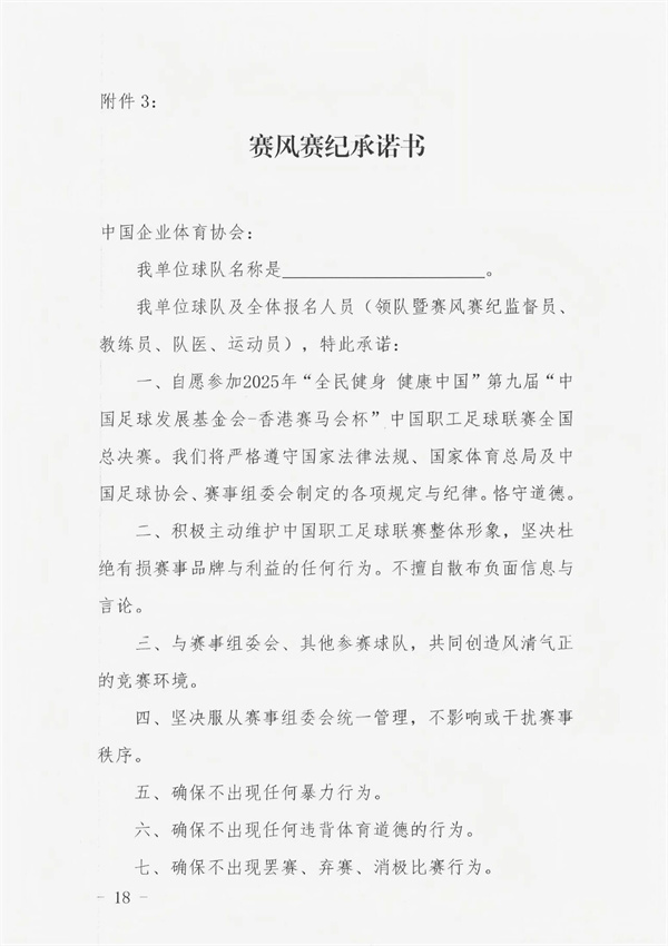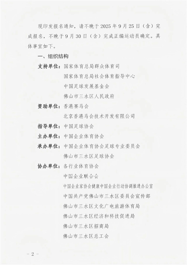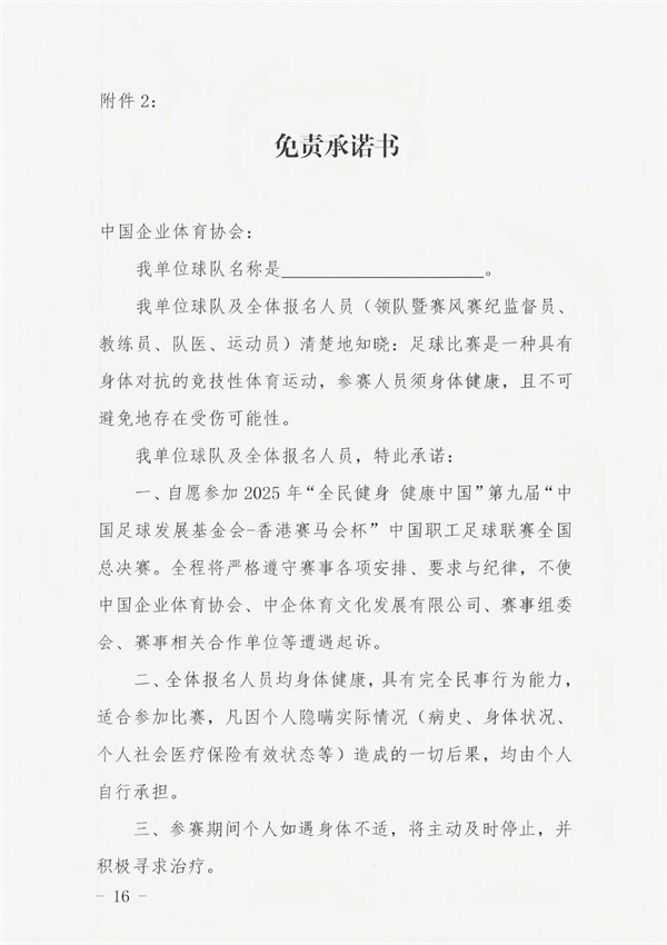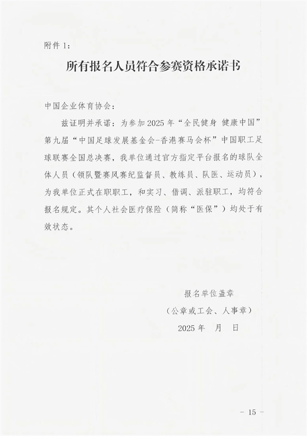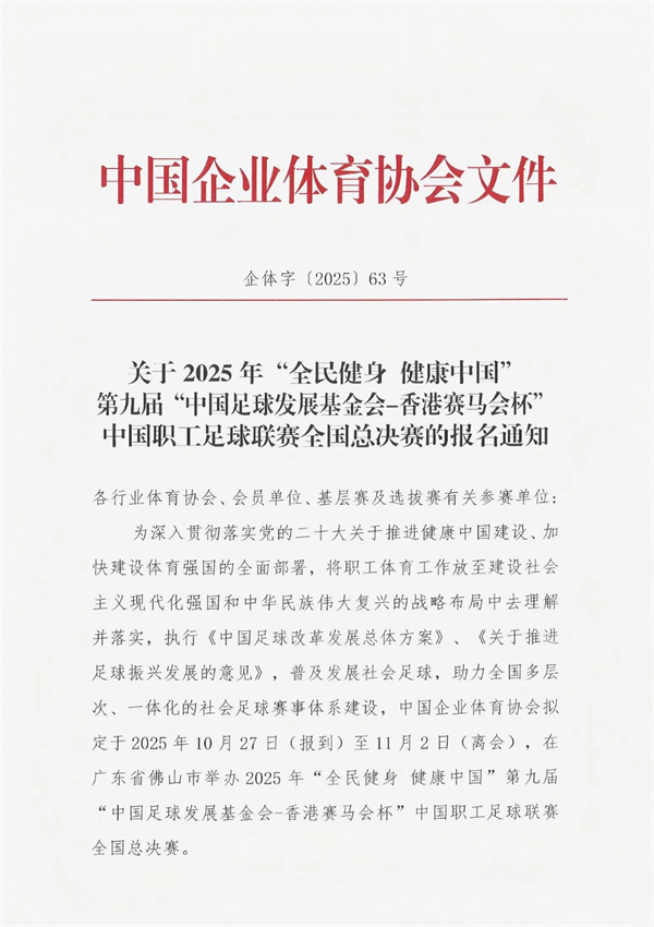 關(guān)于2025年“全民健身健康中國(guó)”第九屆“中國(guó)足球發(fā)展基金會(huì)-香港賽馬會(huì)杯”中國(guó)職工足球聯(lián)賽全國(guó)總決賽的報(bào)名通知