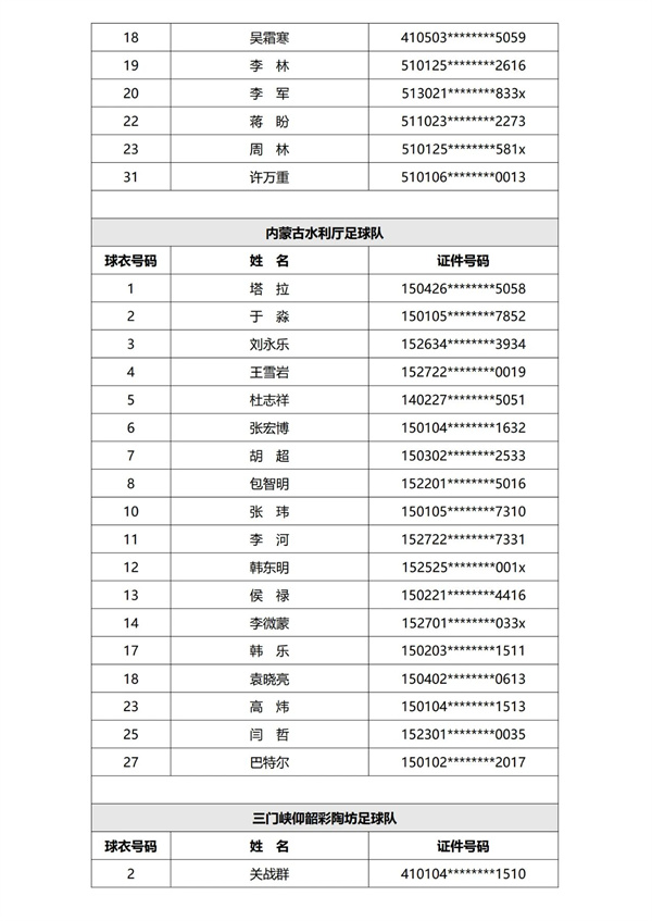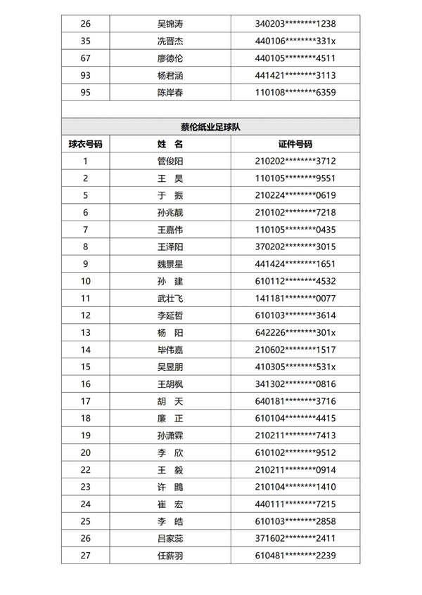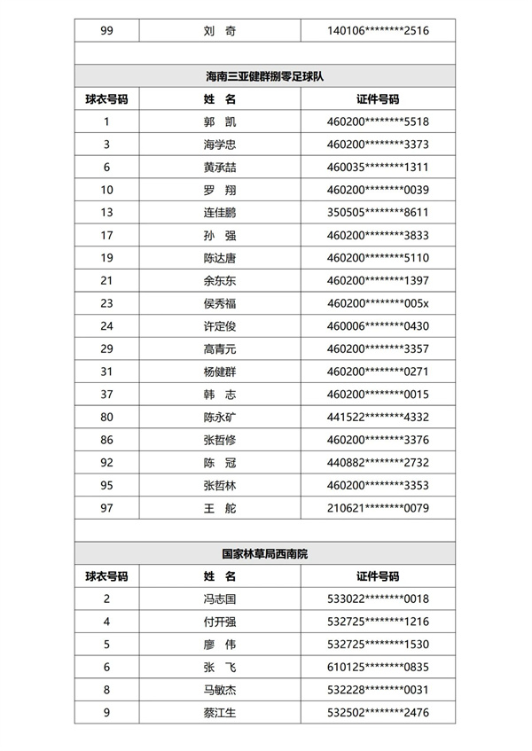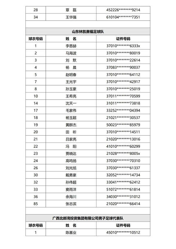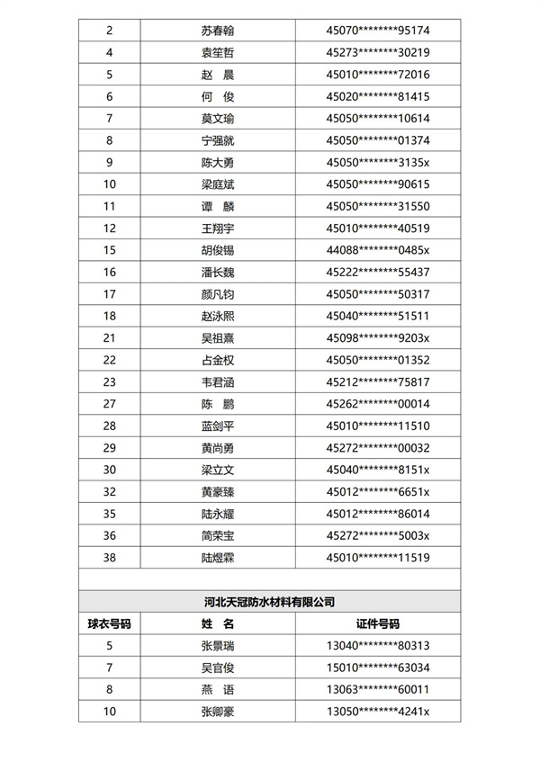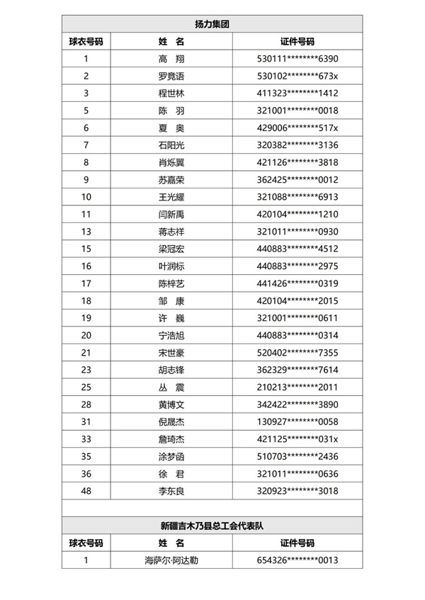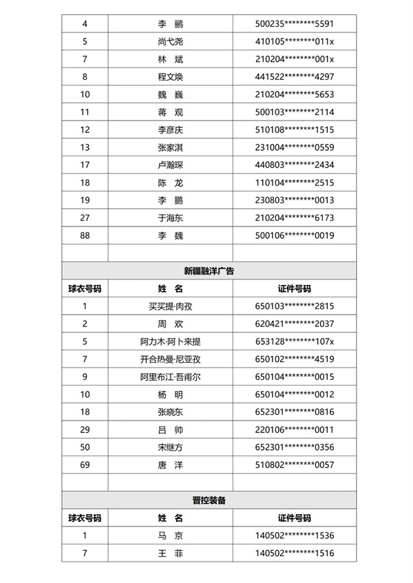 現已完成第一批次40支參賽球隊運動員的資格審核,根據《賽事規(guī)程》及《報名通知》規(guī)定,現進行公示。公示期為三天,自發(fā)布之日計算。公示期結束后,組委會不再受理關于運動員資格的舉報或仲裁申請。