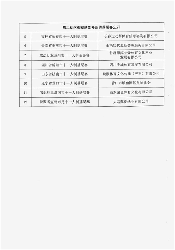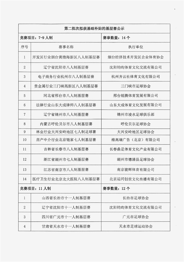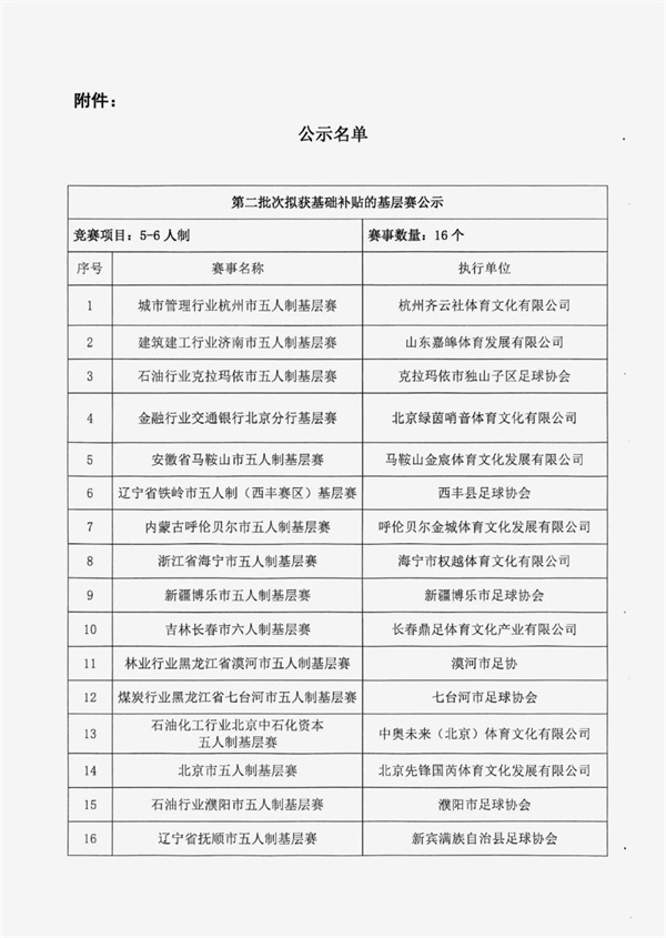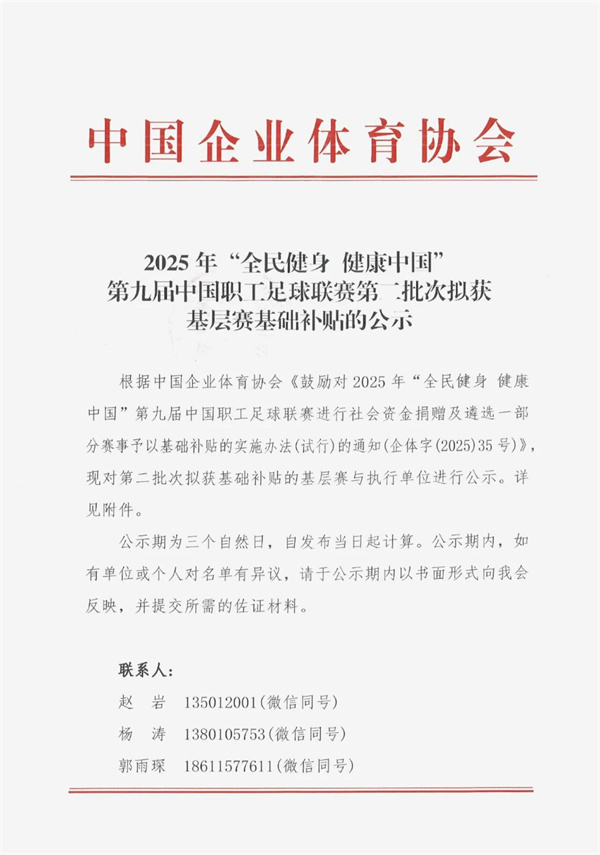 2025年“全民健身 健康中國”第九屆中國職工足球聯賽第二批次擬獲基層賽基礎補貼的公示