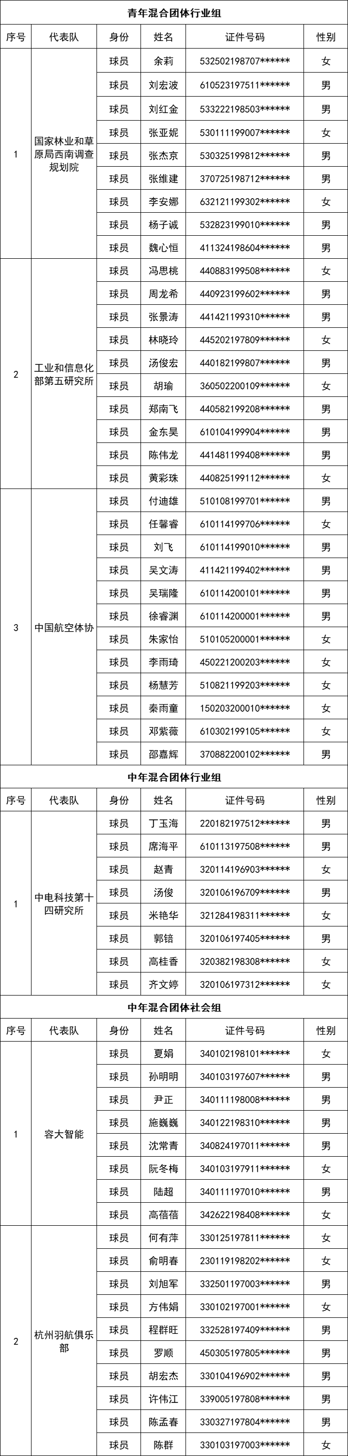 “勞動者杯”2025中國職工羽毛球聯賽總決賽選手名單公示