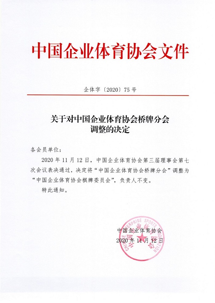 關于對中國企業體育協會橋牌分會進行調整的決定