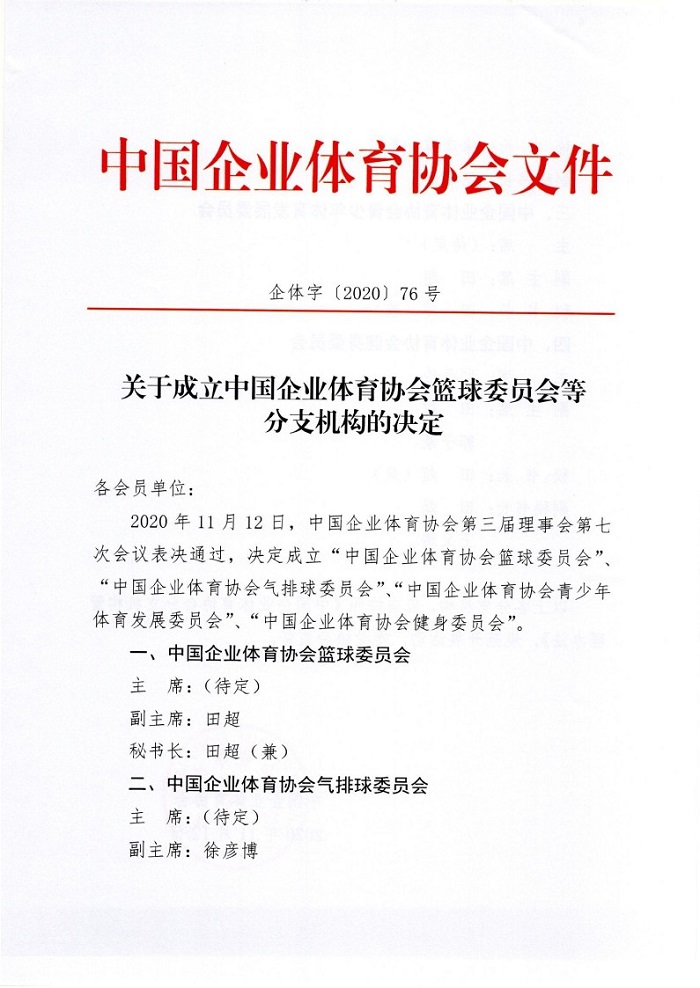 關(guān)于成立中國(guó)企業(yè)體育協(xié)會(huì)分支機(jī)構(gòu)的決定