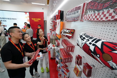 發布會現場,還舉辦了抖音、天貓、快手平臺中國國家隊官方特許產品旗艦店上線儀式。另外,中國國家隊官方特許零售店國家體育場店、王府井工美大廈店、體育館路店、南京夫子廟店等實體零售店也在當日正式營業,此后還將在得物、小紅書等互聯網平臺開設旗艦店,在全國各大城市開設線下零售店,在高鐵列車上開設銷售點,為廣大消費者、體育迷提供更便捷的購買渠道。