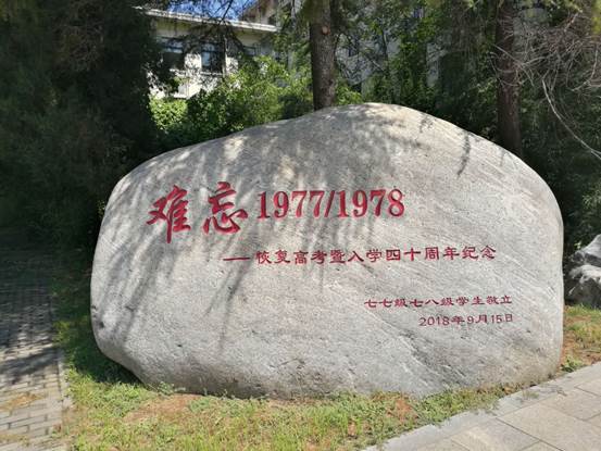還有77、78級近2000名校友紀念恢復高考40周年的《難忘》石。