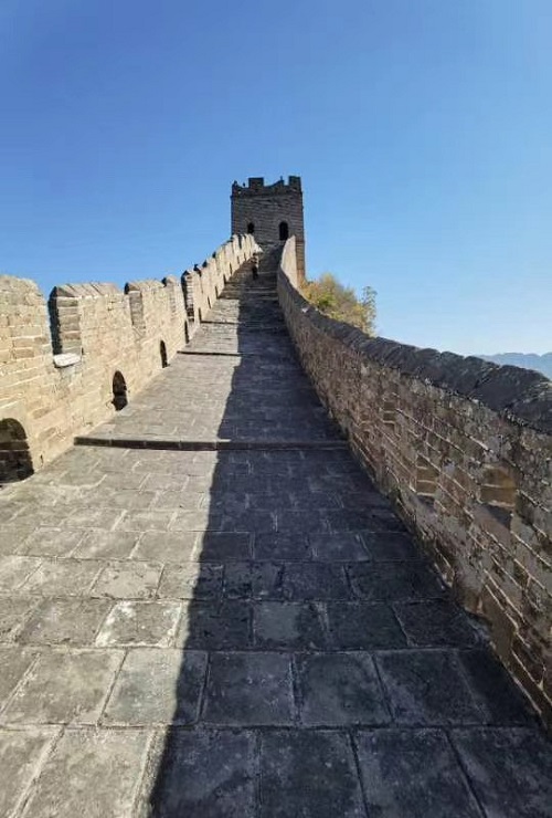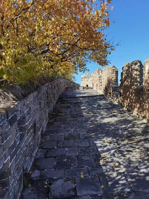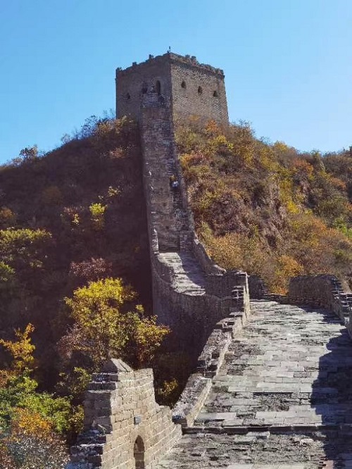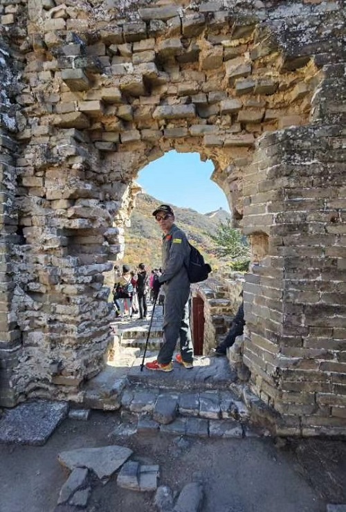 先是6:35才反應過來今天是17日,忙起床穿衣服洗漱,來不及吃早飯了,連跑帶顛跑向地鐵站,因為7:30在10號線北土城站集合乘大巴出發,結果忙中出錯一一忘帶手機了!回去取來不及了,只好硬著頭皮上了地鐵,從14號線倒10號線到北土城有16站,時間僅有35分鐘。我心急如焚,不愿遲到拖累集體行動。還好,7:32我跑出了地鐵口,春明正焦急等在地鐵口,還好,我不是最晚一個,還有兩位沒到。我如釋重負上了車,這才覺得內衣褲都濕透了!因沒帶手機,這組和下組朋友圈照片都是王春明校拍照的,我在欣賞金山嶺景色的時候,光當模特了,所以沒有什么顯擺的了。