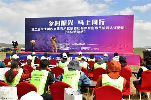 FITE是國際馬術旅游聯合會(Federation International of Equestrian Tourism)的簡稱。2017年9月,中國作為新成員國正式加入了該組織,成為該組織的全球第22個成員國。本次馬術旅游職業技能培訓認證活動是2023年內蒙古文旅馬產業標準化的第一站,也是錫林浩特市馬產業招商引資后第一個落地項目。來自錫林浩特市以及北京、云南、貴州、安徽和深圳等省市的95名馬文旅從業者參加了為期三天的標準化、規范化馬術旅游從業人員職業技能培訓。
