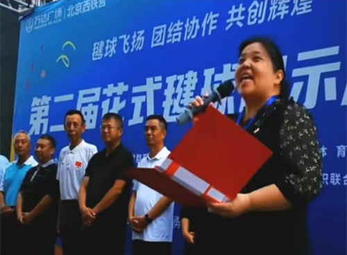 在《愛心毽球之隊歌》的背景音樂下,展示活動拉開了序幕。在熱烈的掌聲,右安門街道萬達黨群服務中心趙秋平書記致開幕詞。