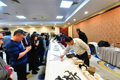 此外,現(xiàn)場到會的書畫家們還上演了一場精彩的筆繪長卷活動,十多位書畫家共同揮毫潑墨,創(chuàng)作出一幅精美的藝術(shù)長卷,并將書畫作品作為賀禮贈送給了本次大會,為發(fā)布會增添了濃厚的藝術(shù)氛圍。