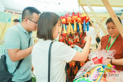 在非遺文創市集上,老陳醋冰激凌、關公戲《忠義千秋》、孝義木偶戲《大圣歸來》等精彩紛呈的非遺項目吸引了大量觀眾駐足觀看。平遙推光漆器髹飾技藝、山西面食技藝等傳統手工藝展示更是讓人嘆為觀止。