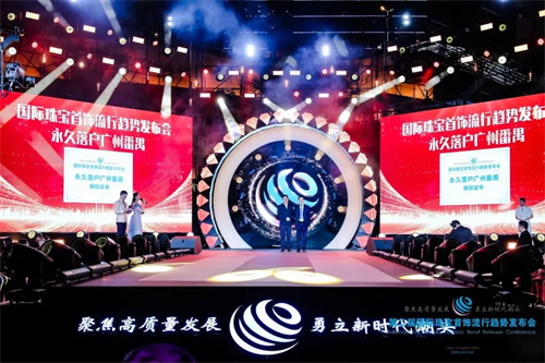 發(fā)布會現(xiàn)場,進行了“國際珠寶首飾流行趨勢發(fā)布會永久落戶廣州番禺”揭牌儀式,以及知名企業(yè)推出各自最新的珠寶產(chǎn)品展示。