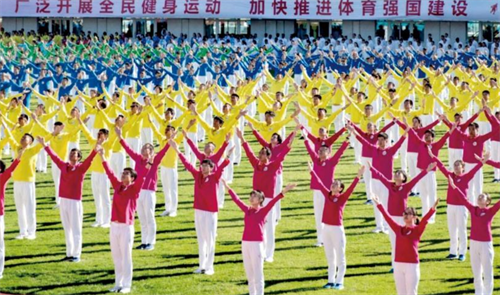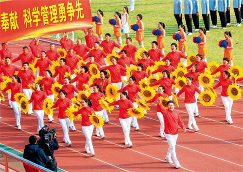 2019年,新中國成立70周年,建儂體育為國慶表演方陣提供21萬件訓練服裝。