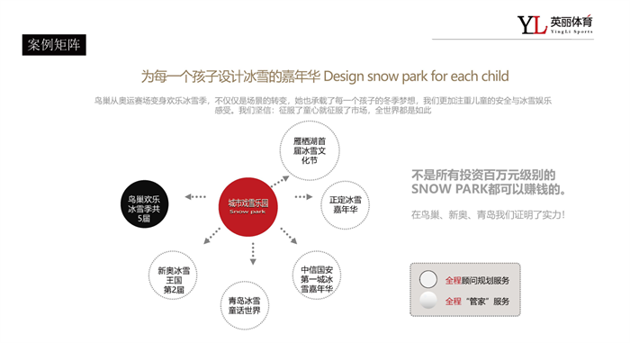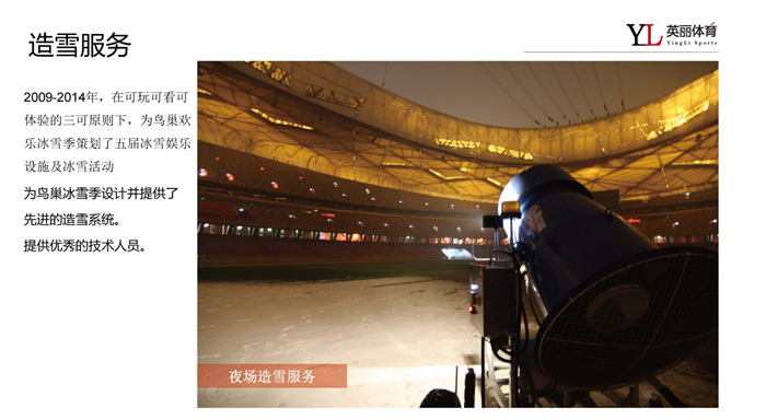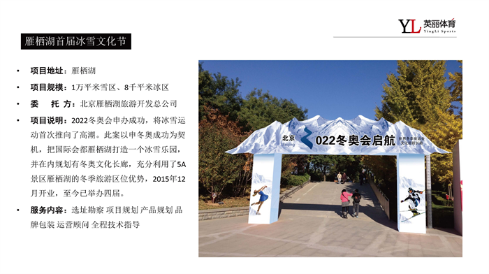 北京英麗體育文化有限公司,是一家致力文旅產(chǎn)業(yè)多年的公司,專注于規(guī)劃、設(shè)計(jì)、咨詢、運(yùn)營管理滑雪場,室內(nèi)滑雪館、城市戲雪樂園,城市文化主題園的公司。本公司擁有滑雪產(chǎn)業(yè)及文化產(chǎn)業(yè)多年經(jīng)營管理經(jīng)驗(yàn)的專家團(tuán)隊(duì)。本著“體育+文化+娛樂”的創(chuàng)新理念,先后參與規(guī)劃設(shè)計(jì)、運(yùn)營管理國內(nèi)多家滑雪場,城市戲雪樂園、冰雪主題園、城市文化休閑主題園的設(shè)計(jì)規(guī)劃與運(yùn)營管理。得到了合作城市及單位的一致好評(píng)。