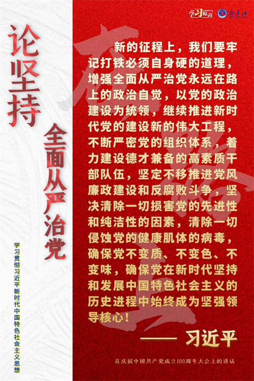 治國必先治黨,黨興才能國強。新征程上,我們要始終推進黨的自我革命。一個飽經滄桑而初心不改的黨,才能基業常青;一個鑄就輝煌仍勇于自我革命的黨,才能無堅不摧。