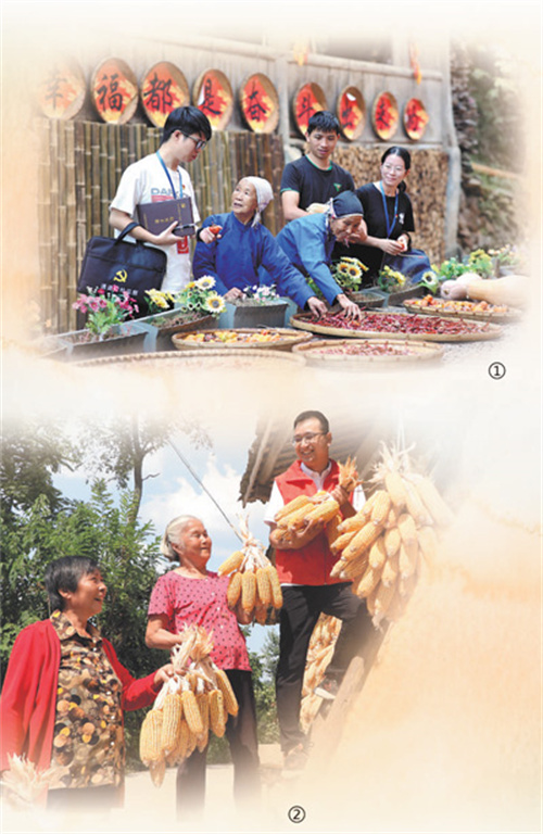 圖②:四川省達州市大竹縣朝陽鄉木魚村,駐村工作隊員(右一)在幫