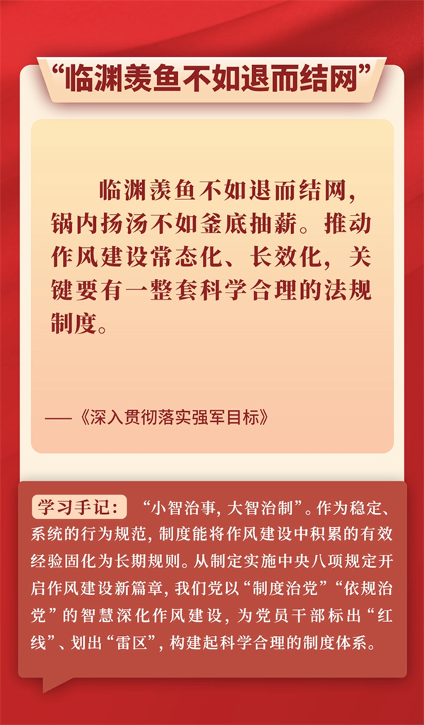 “問渠那得清如許?為有源頭活水來。”關于作風建設,習近平總書記常引用各種古語典故,有的從警示層面講危害,有的從倡導層面談踐行,旁征博引、畫龍點睛,把古人智慧化用于作風建設的當代實踐,給人以思想啟迪、靈魂洗禮。
