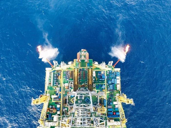 我國加快發(fā)展新能源和可再生能源,能源消費結(jié)構(gòu)不斷優(yōu)化。2020年,我國率先實現(xiàn)水平井鉆采深海“可燃冰”。圖為我國海域天然氣水合物第二輪試采平臺“藍鯨2號”噴出雙火焰(2020年3月25日攝)。 新華社發(fā) 廣州海洋地質(zhì)調(diào)查局供圖