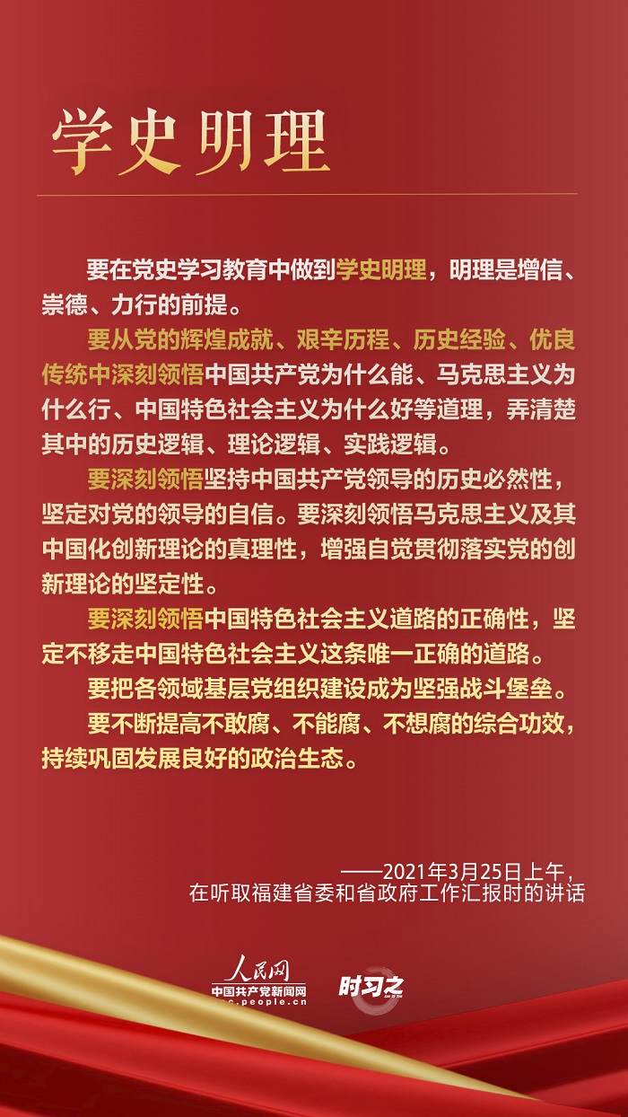 黨史學習教育開展以來,習近平總書記前往多地進行考察并發表重要講話,就黨史學習教育中如何做到“學史明理、學史增信、學史崇德、學史力行”提出了學習路徑與方法。