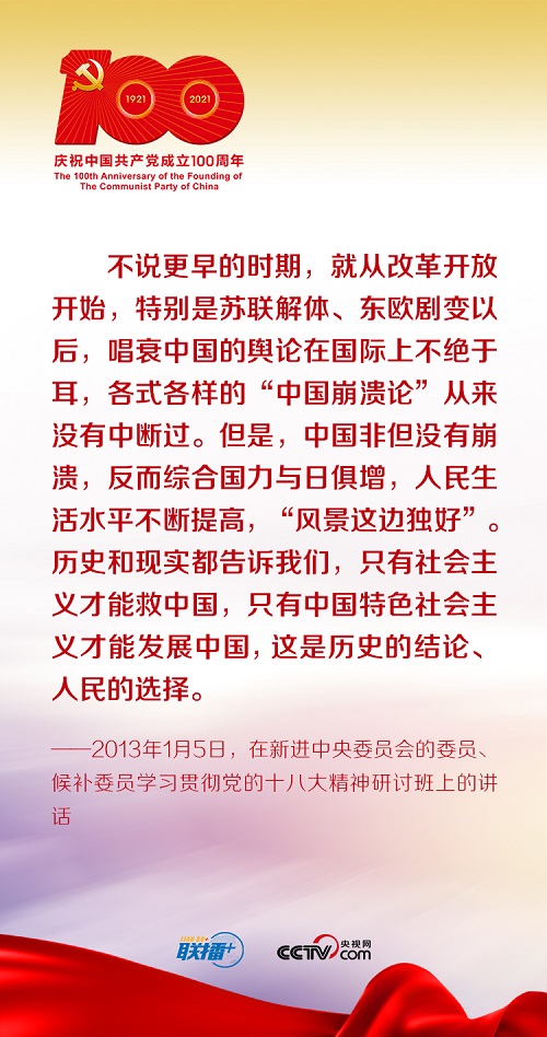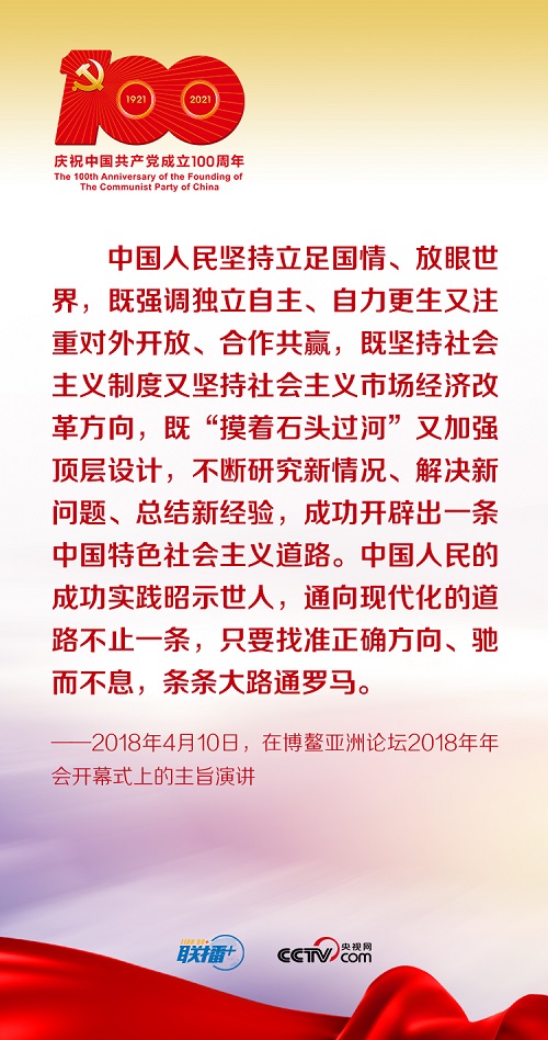 “我們始終認為,各國的發展道路應由各國人民選擇。所謂的‘中國模式’是中國人民在自己的奮斗實踐中創造的中國特色社會主義道路。我們堅信,隨著中國特色社會主義不斷發展,我們的制度必將越來越成熟,我國社會主義制度的優越性必將進一步顯現,我們的道路必將越走越寬廣,我國發展道路對世界的影響必將越來越大。”