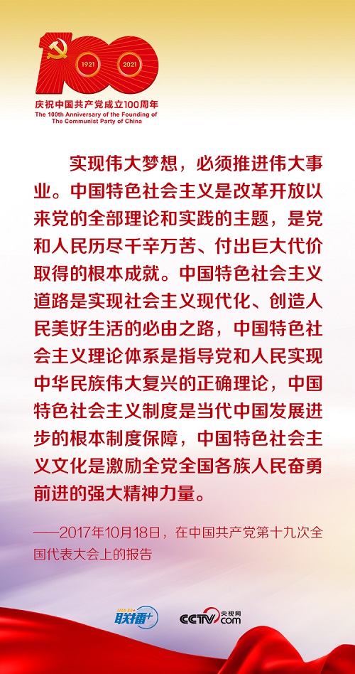 “中國特色社會主義是黨和人民歷經千辛萬苦、付出巨大代價取得的根本成就,是實現中華民族偉大復興的正確道路。”