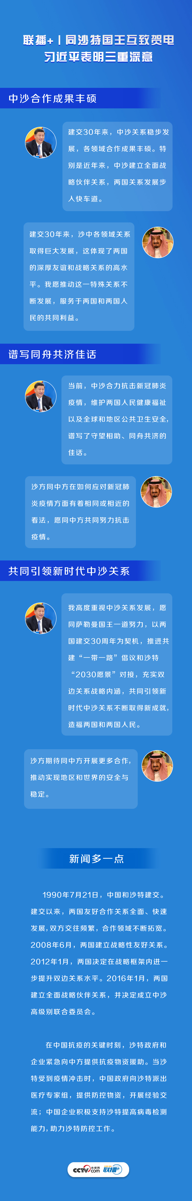 中國與沙特的交往和友誼源遠流長,7月21日是中沙建交30周年紀念日。習近平主席同沙特國王薩勒曼互致賀電傳遞了哪些重要信息,央視網《聯播+》為您梳理。