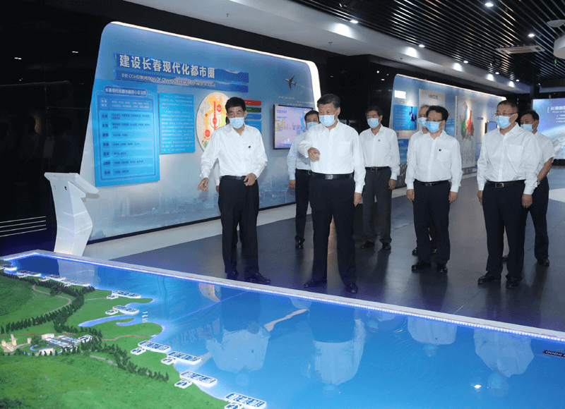 7月22日至24日,中共中央總書記、國家主席、中央軍委主席習近平在吉林省考察。這是7月23日下午,習近平考察長春新區規劃展覽館,了解新區規劃建設情況。新華社記者 王曄 攝
