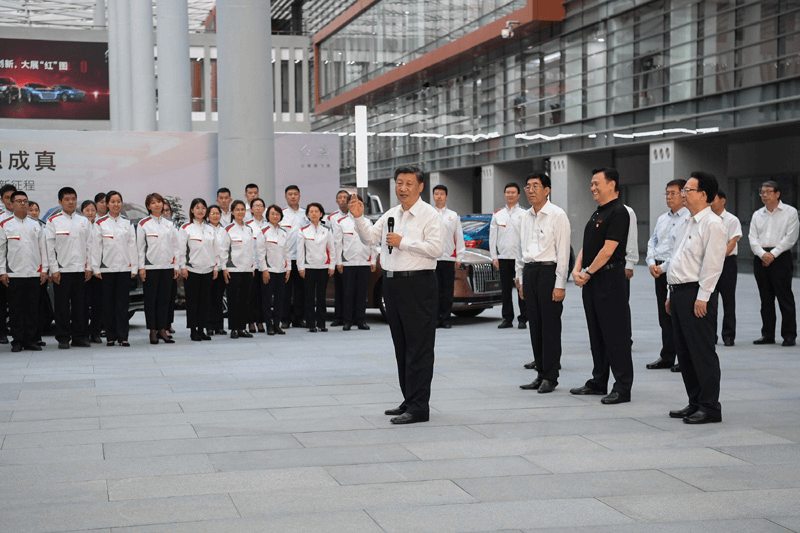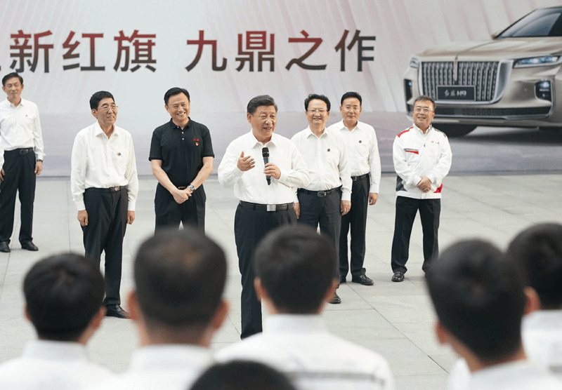 企業展廳里,習近平察看了最新款式的整車產品,了解集團創新驅動、體制機制創新、產業結構優化升級情況,并同職工代表簡短交流。他強調,推動我國汽車制造業高質量發展,必須加強關鍵核心技術和關鍵零部件的自主研發,實現技術自立自強,做強做大民族品牌。當今世界制造業競爭激烈,要搶抓機遇,大力發展戰略性新興產業,實現彎道超車。希望大家發憤圖強、不負韶華,在推動東北振興中奉獻聰明才智,在實現中華民族偉大復興中國夢的進程中書寫壯麗的青春華章。