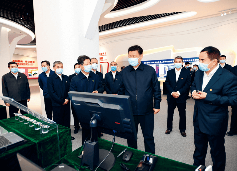 2020年5月11日至12日,中共中央總書記、國家主席、中央軍委主席習近平在山西考察。這是5月12日上午,習近平在山西轉型綜合改革示范區政務服務中心,了解示范區改革創新發展情況。新華社記者 謝環馳/攝