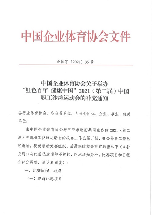 2021(第二屆)中國職工沙灘運動會的補充通知