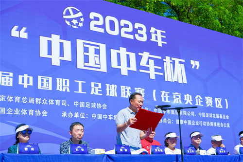 7月8日,“健康中國 企業有為 億萬職工 科學健身”2023年“中國中車杯”第七屆中國職工足球聯賽(在京央企賽區),在北京國家奧林匹克體育中心訓練場,鳴哨開賽。國家體育總局群眾體育司二級巡視員何紅宇,宣布開幕。