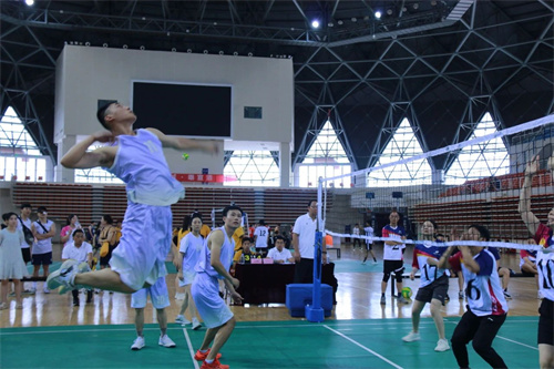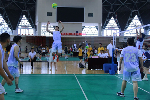 裁判宣布比賽開始,各參賽隊(duì)摩拳擦掌,比賽熱情瞬間高漲,場上運(yùn)動員騰空而起,發(fā)球,攔網(wǎng),扣殺一氣呵成,雙方不分上下,也都不甘示弱,場下隊(duì)員加油聲、歡呼聲此起彼伏。