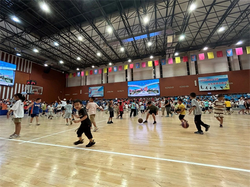 中場休息時,籃球場上又迎來了一群特殊的“小球員”—職工的孩子們。他們迫不及待地拿起籃球,模仿著大人們的樣子,在球場上盡情奔跑、投籃。雖然他們的動作還略顯稚嫩,但那份對籃球的熱愛與執著卻讓人動容。家長們在場邊觀看,不時傳來鼓勵與指導的聲音,整個籃球場充滿了溫馨與歡樂,子弟學校籃球寶貝們也進行了精彩表演。