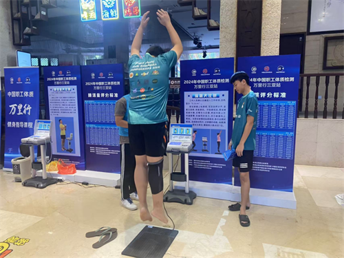 2024年職工體質檢測與科學健身指導萬里行(以下簡稱“萬里行”)項目的收官站暨年終總結會在職沙會期間舉辦。活動在運動員入住的酒店設置互動專區,在比賽現場打造展示區,為參賽的運動員、教練員提供體質檢測服務,邀請大家參加體質大比拼。比賽期間,共有39個單位的119位職工參加了比拼。