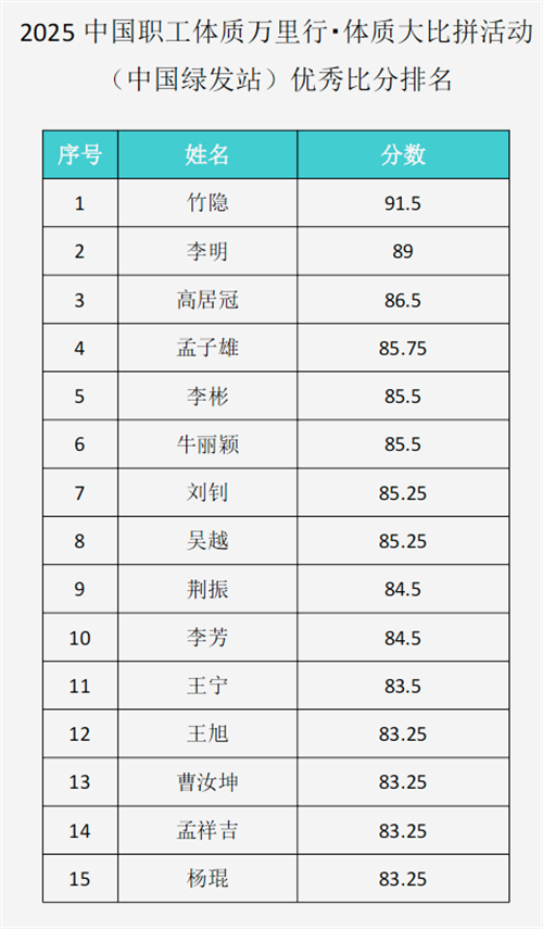 體質(zhì)大比拼活動(dòng),突破性地將體質(zhì)檢測(cè)與競(jìng)賽模式相結(jié)合。活動(dòng)以17項(xiàng)體質(zhì)檢測(cè)項(xiàng)目的綜合評(píng)分作為嚴(yán)格的考核標(biāo)準(zhǔn),當(dāng)職工的綜合分達(dá)到83分及以上,即可被評(píng)定為優(yōu)秀水平,將被授予"體質(zhì)達(dá)人優(yōu)秀證書"。這一科學(xué)、量化的評(píng)定方式,不僅讓職工清晰了解自身身體狀況,更為后續(xù)科學(xué)健身提供了精準(zhǔn)的指導(dǎo)方向,推動(dòng)職工健康管理在企事業(yè)單位走向常態(tài)化。