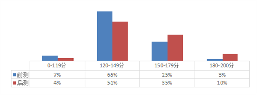 試點(diǎn)班組員工職業(yè)幸福感得分段的占比分布變化