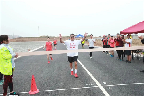 2017年8月,亞泰集團第七屆員工運動會開幕前夕,一場“挑戰(zhàn)自我,始于足下”的線上馬拉松活動開始了。4079名亞泰員工通過手機APP注冊參與了10公里、半程馬拉松、全程馬拉松三個不同組別的競賽,最終6人完成了全程馬拉松、41人完成了半程馬拉松,686人完成了10公里健跑挑戰(zhàn)。2017年9月10日,“百圈全馬”挑戰(zhàn)在建設中的亞泰體育文化中心開啟,宋總帶領高管團隊在400米賽道上奔跑100周,累計跑步42.195公里, 用時4小時47分,完成了自己的首個馬拉松。