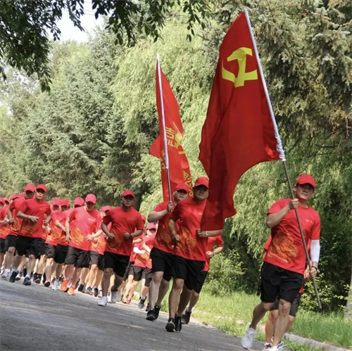 文化的感召當然也不僅限于對企業(yè)的熱愛。2021年7月,為慶祝黨的百年華誕,亞泰集團黨委組織的“健跑百年路、奮進新征程”活動中,亞泰人以7.1公里、21公里等有紀念意義的里程數(shù)字表達對黨生日的祝福。2022年為迎接黨的二十大,亞泰集團黨委組織開展了“黨旗飄揚、奮斗有我”主題黨日活動,以紅色健跑等多種形式,向黨的二十大獻禮。利用全國職工線上健身運動平臺,組織參加了“中國夢 ? 勞動美——喜迎二十大建功新時代”全國職工線上健身運動專題活動。