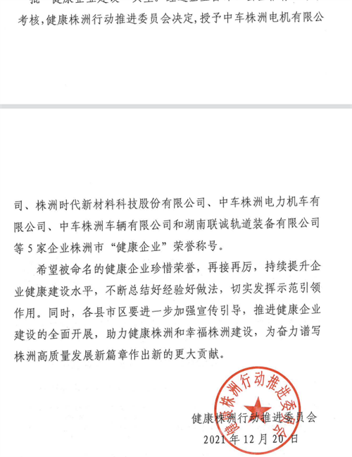 中車將繼續堅持以“創造美好環境”為“初心”,以“保障員工健康”為“使命”,以員工生命安全健康為中心,以打造“健康中車”為目標,積極踐行健康中國企業行動,不斷推動健康企業建設,以優異成績迎接黨的二十大勝利召開。